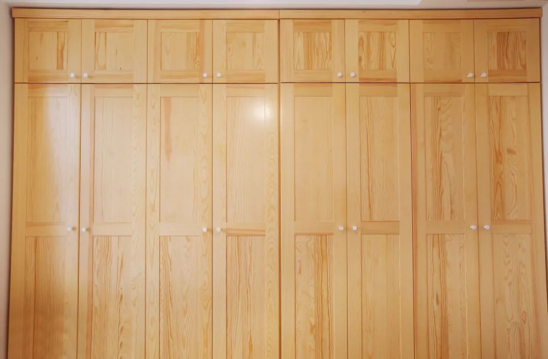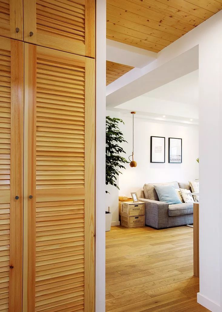 ▲ 次卧的一面墙做了整排的实木衣柜,足够女主人收纳了。