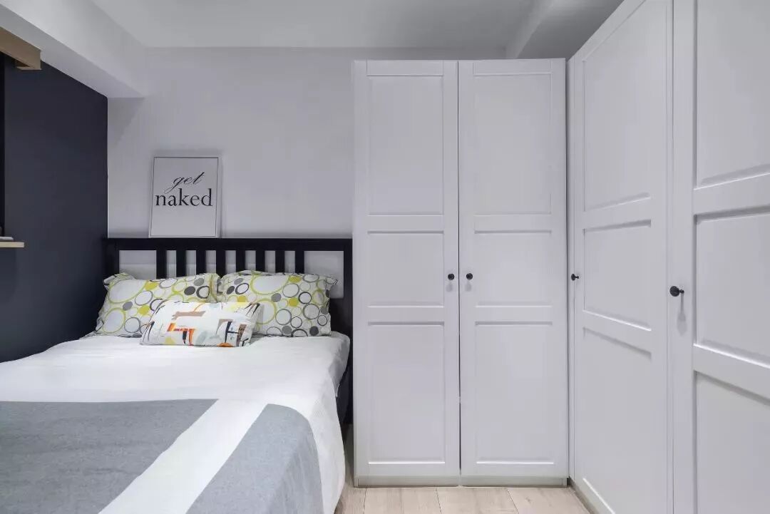 次卧的空间较为紧凑一些,L型的衣柜比较占用空间,一张单人床刚好放下。